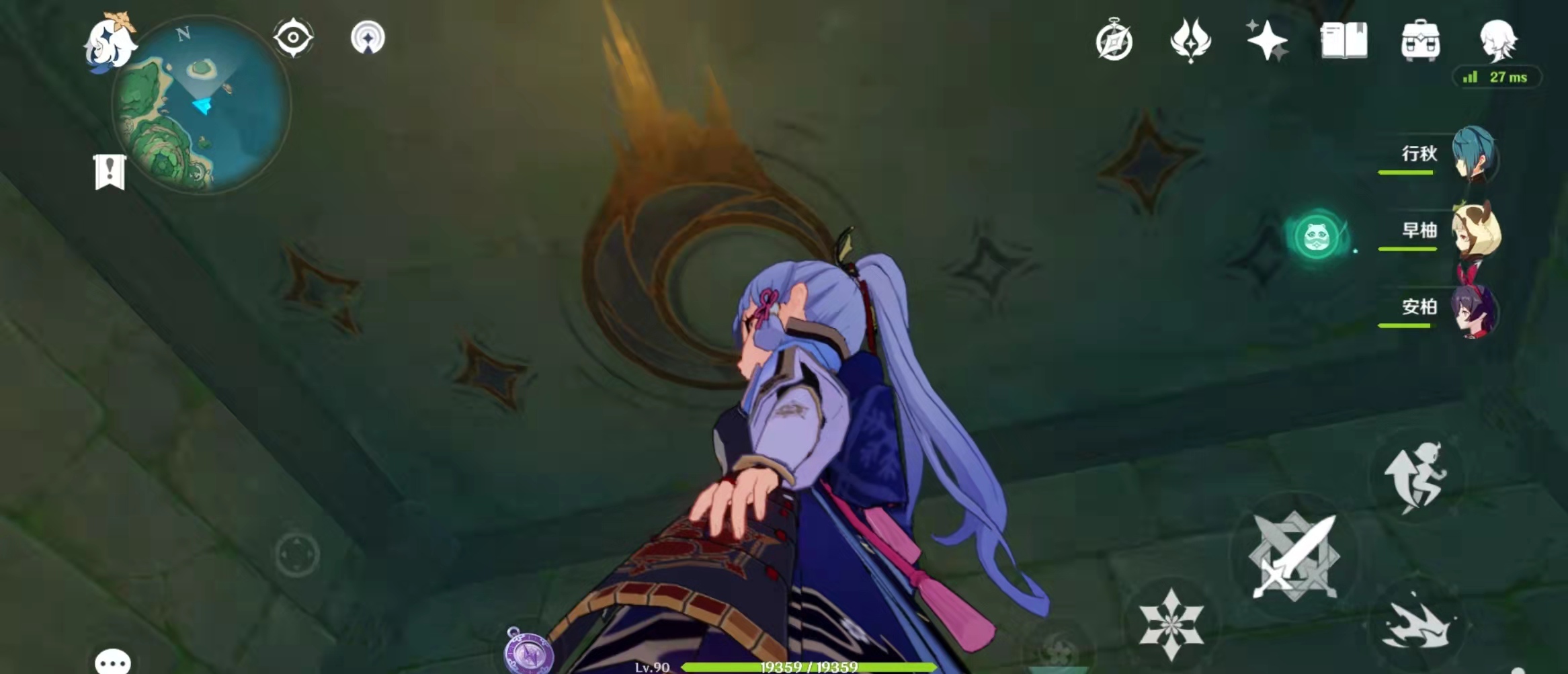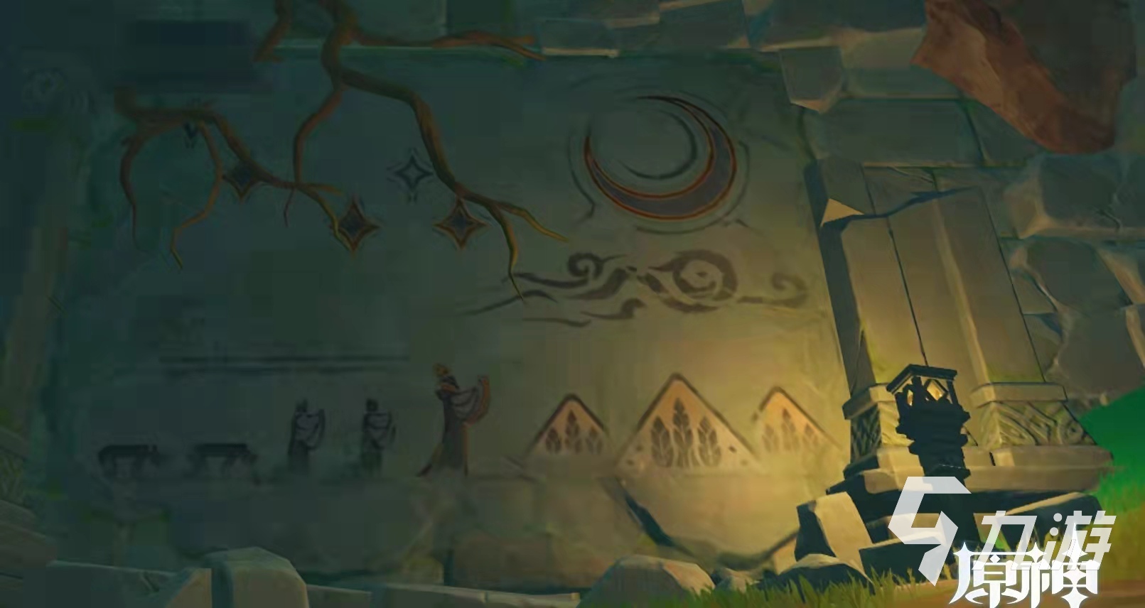 2.這是一處隱藏的隔間,需要用羽毛將石門(mén)打開(kāi),進(jìn)入后可以看到一面墻上擺著許多火炬,這時(shí)玩家繼續(xù)往里走,可以看到雷靈和指針機(jī)關(guān),那個(gè)位置抬頭網(wǎng)上看可以看到壁畫(huà),玩家需要調(diào)整一下位置,之后同樣點(diǎn)亮星星對(duì)應(yīng)的火把即可,旅行者也能在這里獲得一個(gè)精致寶箱。