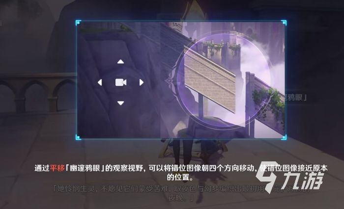 走進(jìn)夜鴉陣臺(tái)后,點(diǎn)擊他會(huì)出現(xiàn)一個(gè)類(lèi)似鏡頭的視角,而這個(gè)視角是可以上下左右移動(dòng)的,不過(guò)移動(dòng)的范圍有限,同時(shí)鏡頭還可以調(diào)近焦和遠(yuǎn)焦,根據(jù)鏡頭你們可以把里面的物體對(duì)應(yīng)到那些殘缺物體或者斷橋上,接著場(chǎng)景就會(huì)發(fā)生變化,那些斷掉的橋梁鍵直接被修復(fù)好。