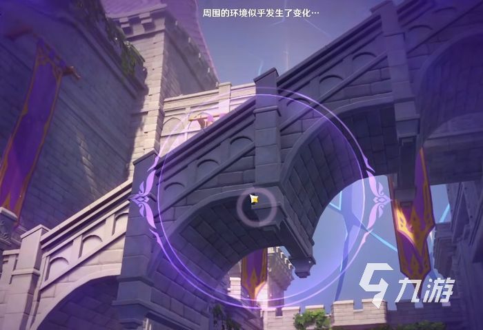 按照指定的路線(xiàn)往前走會(huì)發(fā)現(xiàn)一些斷橋?qū)⒊霈F(xiàn)在面前,有了斷橋后玩家們就無(wú)法繼續(xù)向前了,想要闖進(jìn)去就必須修復(fù)這些斷橋,在旁邊你們可以發(fā)現(xiàn)一個(gè)名為夜鴉凝視的紫色陣臺(tái)。