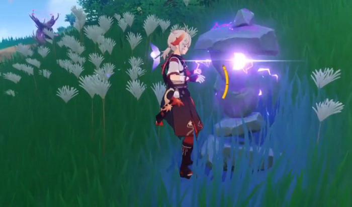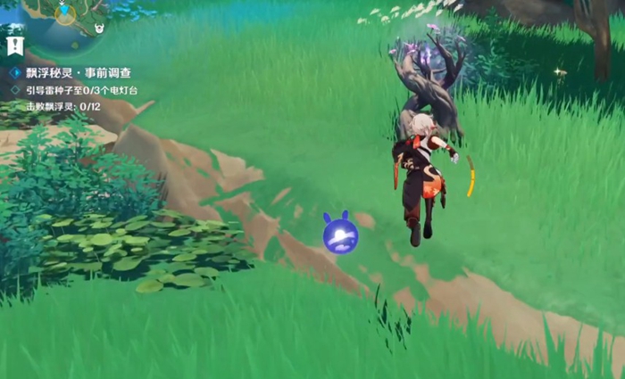等到將所有的三個電燈臺全部點(diǎn)亮之后,下方雷種子附近就會出現(xiàn)漂浮靈了,我們?nèi)蝿?wù)中剩下的目的就是要將這些漂浮靈全部擊敗。漂浮靈尤其自己的屬性,目前游戲中有風(fēng)漂浮靈、水漂浮靈以及巖漂浮靈。