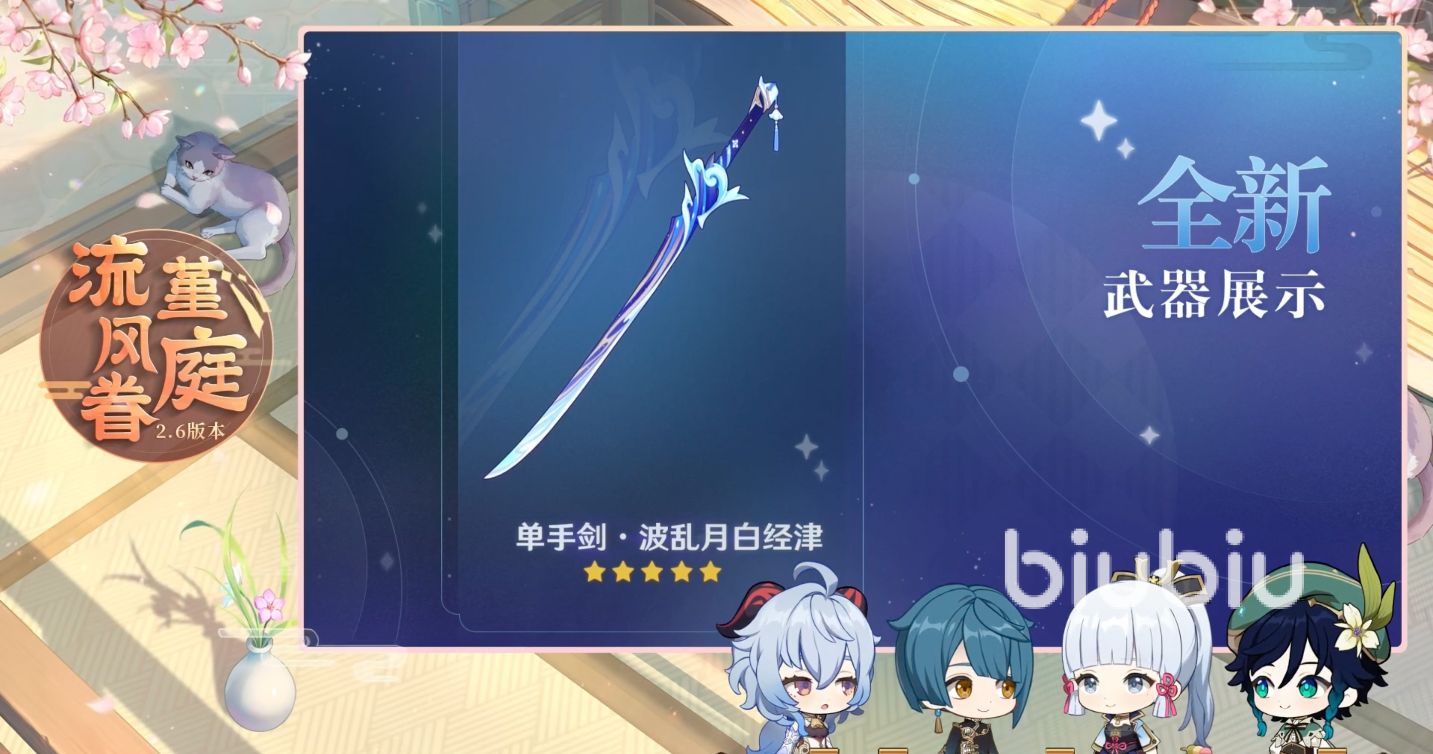 在2.6版本中將會(huì)有一個(gè)新武器,那就是單手劍波亂月白經(jīng)津,為五星級(jí)別,但其他屬性消息官方并沒有爆料。但在PV中使用者為神里綾人,估計(jì)這是神里綾人的專屬武器了。具體的話,等后續(xù)官方消息。