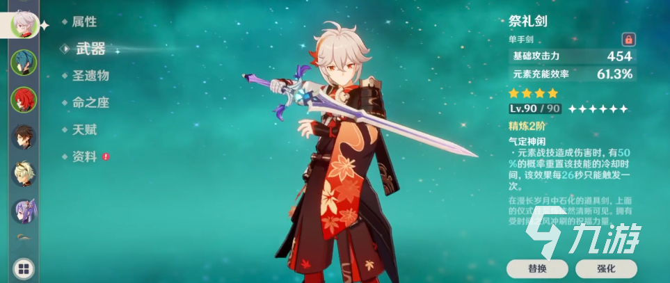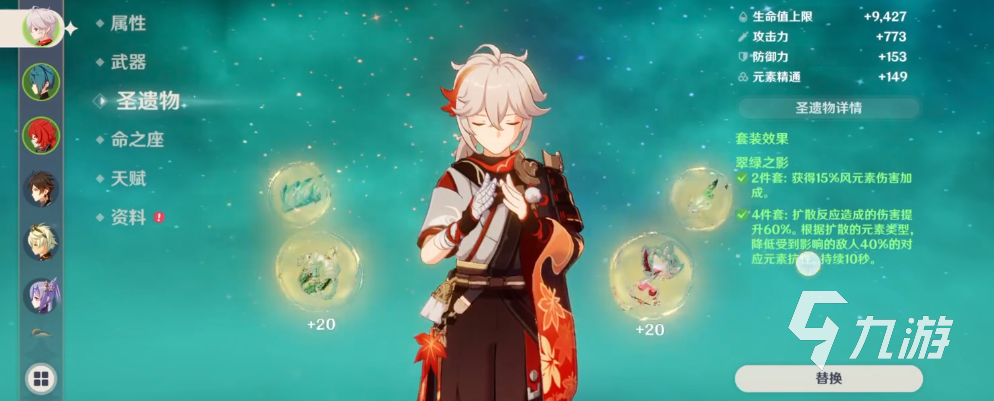 空之杯∶元素精通和風(fēng)傷,推薦大家給一些風(fēng)元素傷害為主的輸出位使用。
