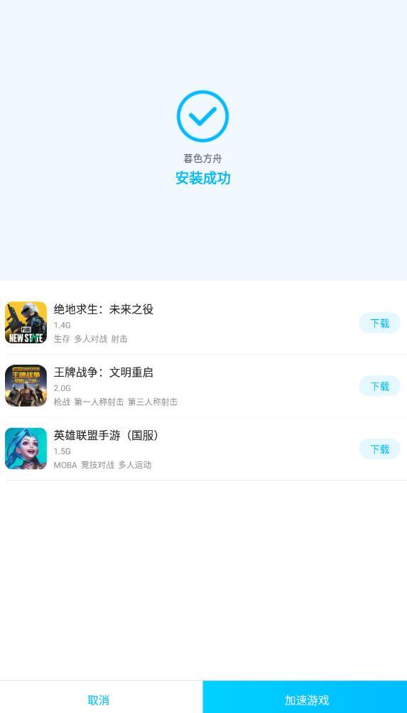 玩家在完成了游戲的下載之后,就進(jìn)入了暮色方舟的安裝界面,玩家直接點(diǎn)擊安裝,就可以了;完成了暮色方舟的安裝之后,玩家會看到和下圖一樣的界面,玩家直接點(diǎn)擊該界面的加速游戲,就可以開始游戲的加速了。