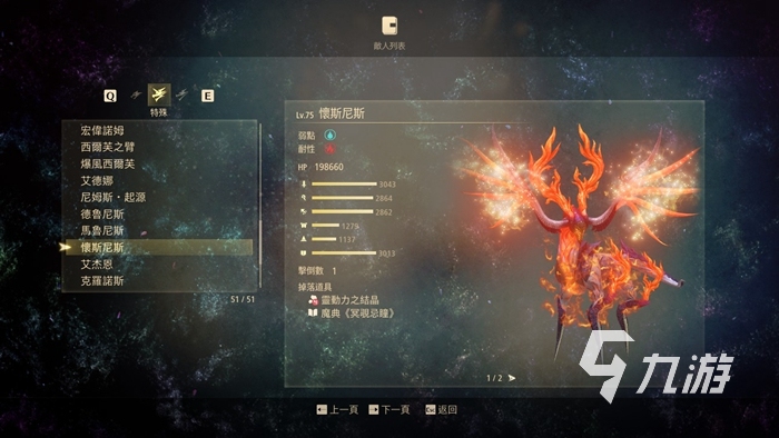 在拿到第二把鑰匙前往神諭雪山的山頂之后我們會(huì)遭遇到三個(gè)敵人,分別是德魯尼斯、懷斯尼斯和馬魯尼斯,而琳薇爾的魔武器冥覗忌瞳就是擊敗懷斯尼斯的獎(jiǎng)勵(lì)了。懷斯尼斯是三只尼斯怪物的一種,也是火屬性的尼斯怪物。會(huì)在身邊升起火柱,或者是設(shè)置會(huì)爆炸的火球是靠近的人被燒成焦炭。懷斯尼斯的等級(jí)為75級(jí),火屬性耐性比較高,但是相對(duì)而言的其弱點(diǎn)就是承受不了太多水屬性傷害。懷斯尼斯的生命值為198660點(diǎn)、攻擊力為3043點(diǎn)、屬性攻擊力為2864點(diǎn)。在與懷斯尼斯的戰(zhàn)斗過(guò)程中建議大家不要輕易近身,并且多多使用水屬性的法術(shù)或者是技能來(lái)對(duì)其造成高額傷害,成功擊敗后即可獲得琳薇爾的魔武器冥覗忌瞳了。