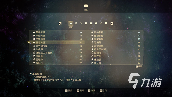 回復(fù)cp值的方法也是有很多的,我們在城鎮(zhèn)的旅館、野外的營地休息時可以將cp值全數(shù)回復(fù),而在部分地圖中也可以看到一些回復(fù)點(diǎn),與回復(fù)點(diǎn)互動也是可以將全隊的生命值以及cp值回復(fù)的。另外,我們使用消耗道具柑橘軟糖、鳳梨軟糖以及王者軟糖也是可以分別回復(fù)30%、60%以及100%的CP值。
