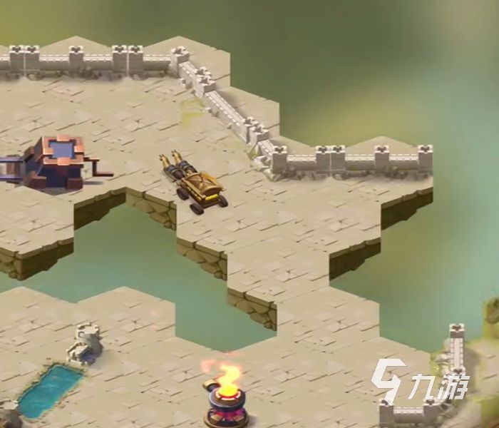 然后前往左下角石頭地板的地圖,需要操作炮臺打爆木桶,不要忘記了車子可以在軌道上移動炮臺,打掉所有木桶就是推關卡環(huán)節(jié)了,打完就可以領取地圖地上的獎勵,觸發(fā)一下對話,走走過場就可以走了。