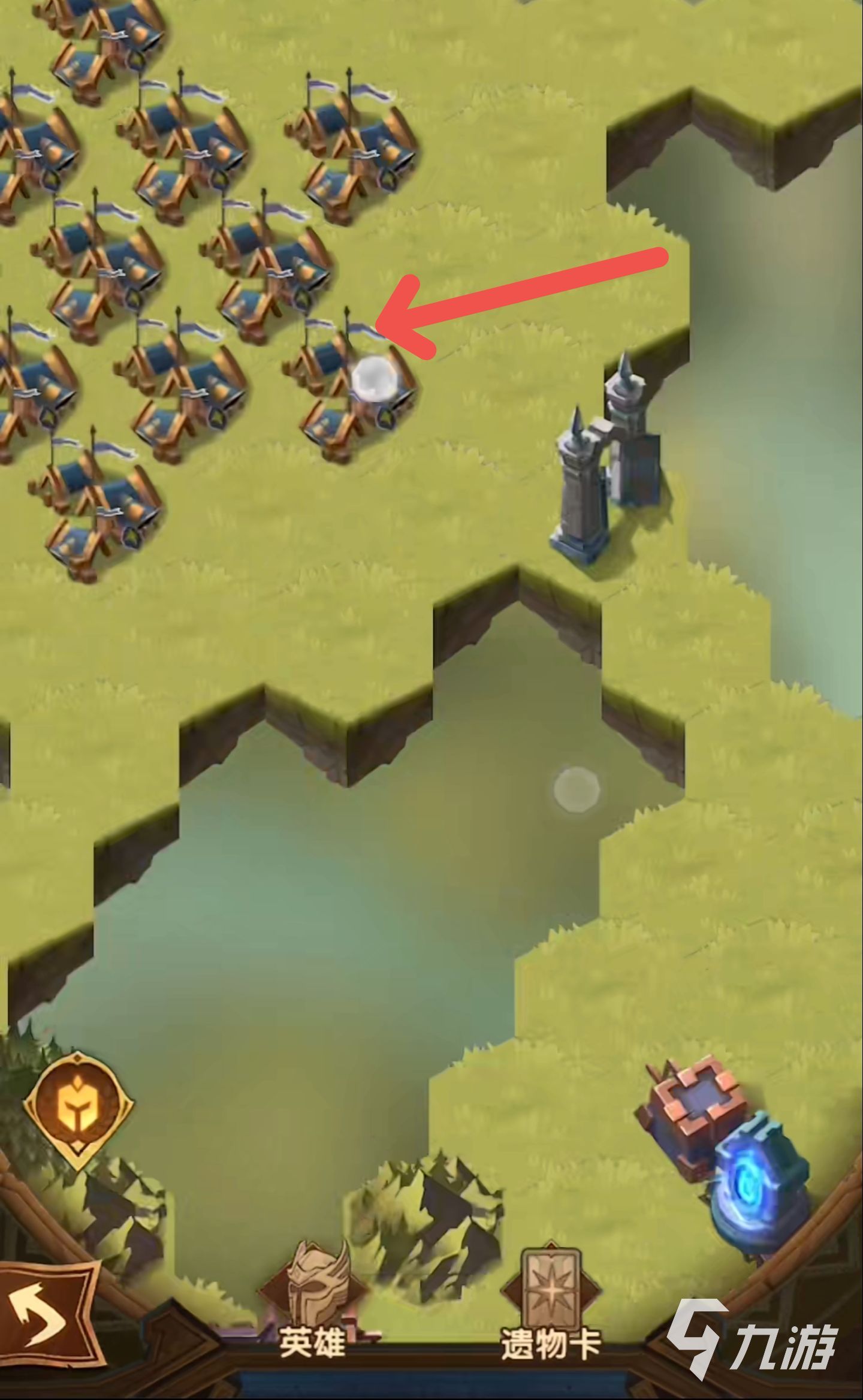 接著來到左邊的位置,這邊點一下這個住宅,然后再把下面和上面的怪物直接推過去,然后回到右上方直接向前推進,接著再回來把右上跟右下這邊推完,再回來這邊點屋子,打開這個橋梁中間的門,回到住宅的位置。