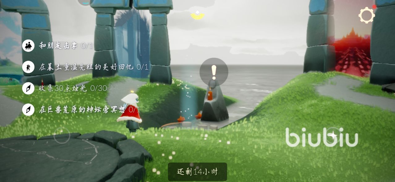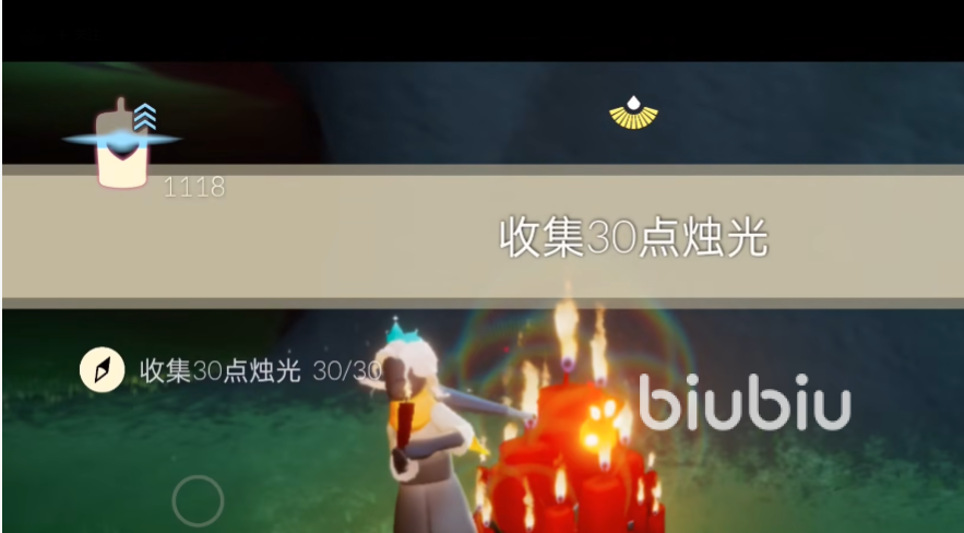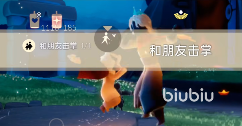 其中和好友擊掌可以是找朋友一起完成,也可以找到雨林大樹(shù)屋中的一位向?qū)茸婊蚴潜硌菁镜南驅(qū)茸?,然后點(diǎn)開(kāi)它們的兌換樹(shù),上面就會(huì)有擊掌的互動(dòng)圖標(biāo),點(diǎn)擊后就可以和先祖擊掌,然后就能完成任務(wù)了。最后收集燭火任務(wù),這個(gè)在跑圖的時(shí)候就可以完成了,還是很簡(jiǎn)單的。