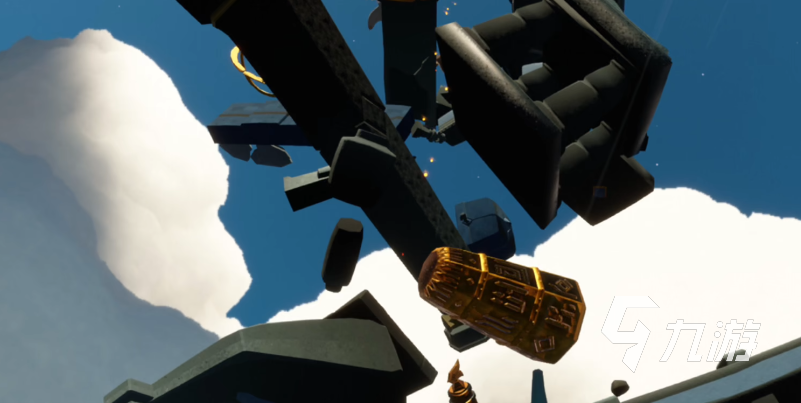 這些碎片仿佛沒有重力一樣,漂浮在空中,而玩家則可以通過跳躍的方式來攀爬,整體來看碎片疊加非常高,想要登頂還是會有一定難度的,最后的迷你光仔也比較好理解,就是在進入云巢時,手下的角色會變得非常小。