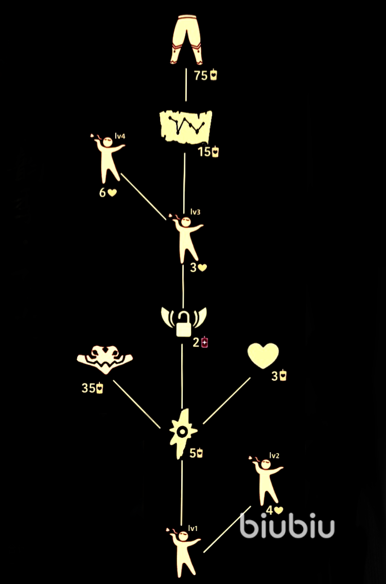 可以看到,褲子需要消耗七十五個白蠟燭,而面具則需要消耗三十五個白蠟燭。此外,還有一個飛吻動作也是能找這位先祖兌換哦,其二級動作要消耗四個小心心,三級需要三個小心心,四級則需要六個小心心。