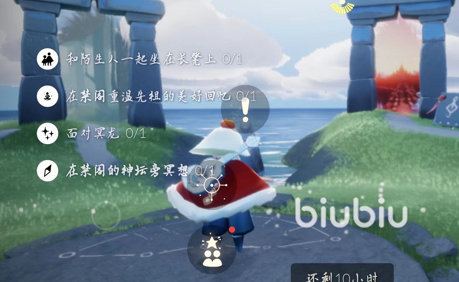 光遇7.26日任務(wù)是:1.和陌生人一起坐在長(zhǎng)凳上,2.在禁閣重溫先祖的美好回憶,3.面對(duì)冥龍,4.在禁閣的神壇旁冥想。