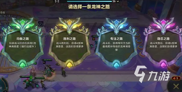 此外賽季還新增“龍神滿意度”機制,從2-2回合開始時,所有玩家都能從下圖4種獲取龍神滿意度的方法中選擇一種,當滿意度達到一定層數(shù)后,就會在下一個回合的時候開啟龍之秘寶。