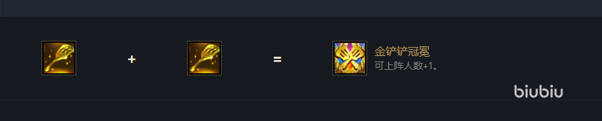 這里有一個小知識點就是金鏟鏟和金鏟鏟冠冕都沒有任何屬性效果上的加成,所以只要合出了金鏟鏟冠冕,把它放在裝備席不給英雄也是生效的,這樣可以幫助一些英雄省下一個裝備欄。當(dāng)遇到一些對手陣容對己方裝備多的英雄有限制作用的時候,就可以把金鏟鏟冠冕給到己方陣容的掛件,從而騙對手的技能。