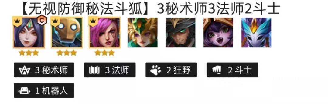 2.陣容羈絆:3/3秘術(shù)師、33法師、2/2狂野、2/2斗士、1/1機(jī)器人