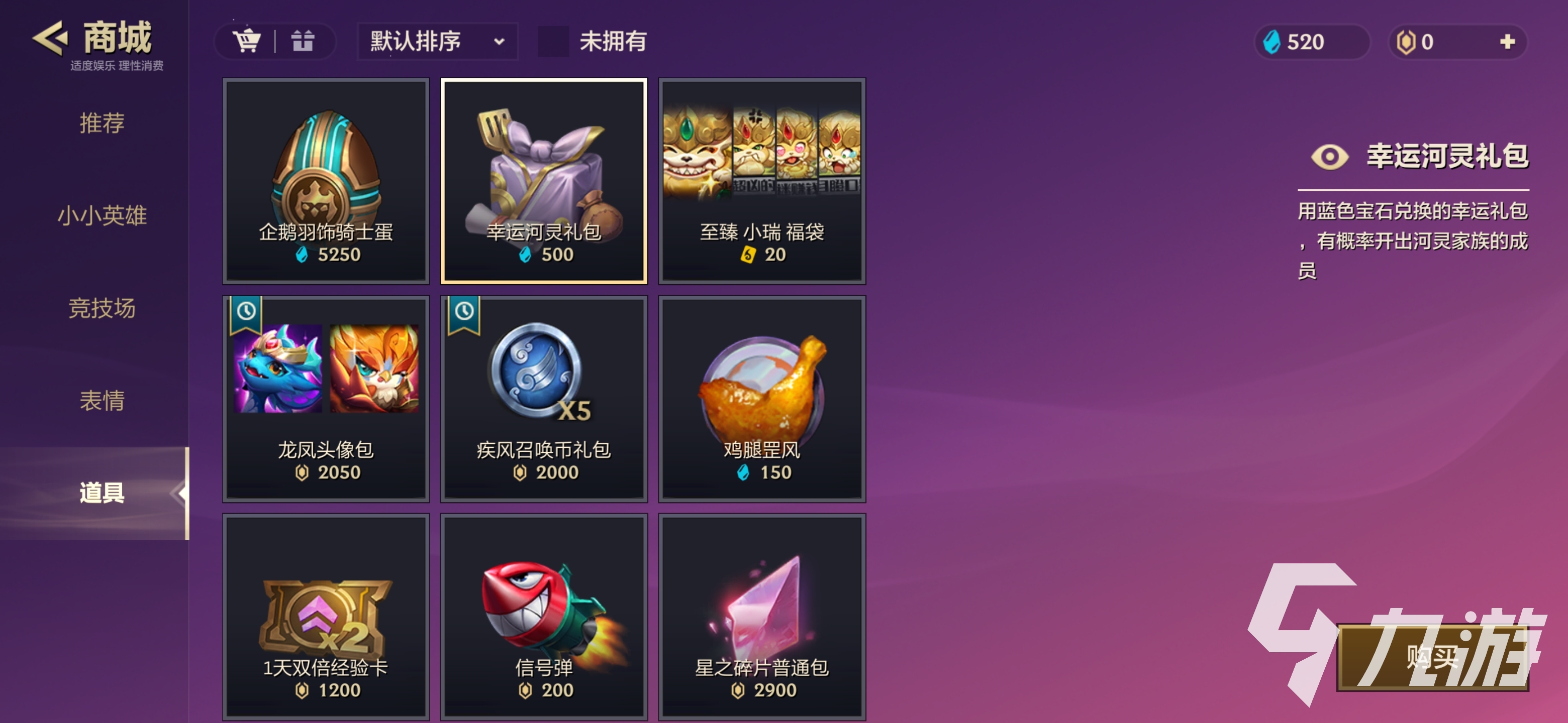 藍色寶石獲取之后就可以到商城的界面進行查看,在右上角就會顯示。而商城中一共分為五欄,分別是推薦小小英雄,競技場,表情以及道具。藍色寶石能購買的東西可謂是少之又少,比如說到企鵝羽飾騎士蛋,可以孵化出一枚企鵝羽飾騎士,需要消費5250個藍色寶石,再比如幸運河靈禮包,這些都是可以開出來在游戲內(nèi)小精靈的禮包。