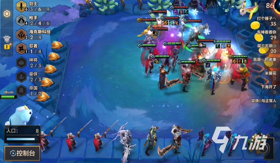然后就是升級(jí)人口,在大家升級(jí)到5人口以后可以去刷一波卡池,盡量把陣容組成3豪俠、3劍士和2槍手。