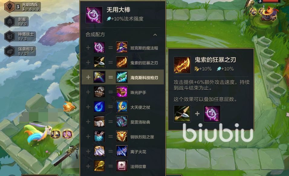 搶裝備技巧:對(duì)于開局搶裝備而言,最受熱門的裝備肯定是不言而喻的反曲弓,如果是一般小屏手機(jī)的玩家,就會(huì)比較難搶到自己心儀的裝備,但是如果拿iPad或者是電腦模擬器玩的玩家就比較容易,如果搶不到反曲弓的話就搶游戲中仍然比較重要的大棒,大棒能和的最重要的裝備就是鳥盾,鳥盾是忍者刺客,狂野龍,卡特的核心裝備,前期只要有個(gè)鳥盾不管排的質(zhì)量好不好肯定可以拉四人口直接合成打連勝,即使沒有在2-4選秀階段,也可以拿到鎖子甲來(lái)合成,緊接著保連勝階段,穩(wěn)住自己的血量。當(dāng)然大棒開局合成另一個(gè)超級(jí)重要的強(qiáng)勢(shì)裝備,就是大天使之杖,火男,皮城執(zhí)法官,劍魔,龍王,女槍等等英雄都是十分需要這件裝備的。或者說(shuō)野怪爆兩個(gè)魔抗裝備就可以做出來(lái)鬼書法爆以及離子,這些都可以保證前期的連勝。