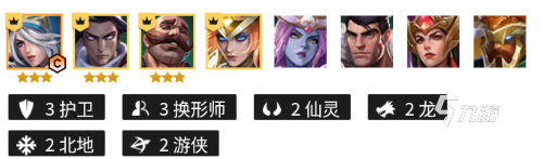 陣容羈絆:三護(hù)衛(wèi)三換形師兩仙靈兩龍兩北地兩游俠。