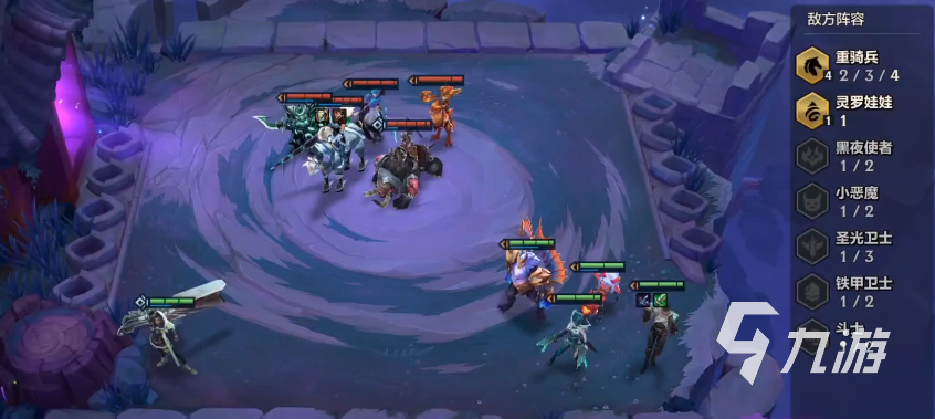 第一關(guān)的敵人的陣容由豬妹、人馬、芮爾、格溫、克烈組成,觸發(fā)4重騎兵1靈羅娃娃羈絆,團(tuán)隊(duì)的主C是芮爾,攜帶泰坦和石像鬼板甲??傮w來說,第一關(guān)的難度不算太大,整體陣容都是偏肉的,團(tuán)隊(duì)里也沒有核心輸出位。重騎兵的羈絆可以讓整個(gè)隊(duì)伍的扛?jìng)芰Φ玫胶艽蟮奶嵘瑢?duì)付這套陣容的最好辦法就是使用遠(yuǎn)程射手打持久戰(zhàn)。高坦度陣容拿爆發(fā)陣容是不現(xiàn)實(shí)的,只能相互打持久戰(zhàn)。