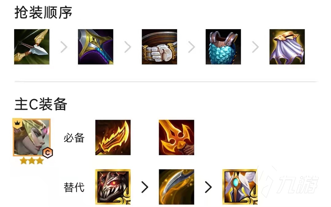 這個體系的后期主C是天使和蓋倫,天使是持續(xù)輸出,蓋倫能扛能打,這套陣容不缺前排,只要保證天使登頂就能打出爆炸輸出,后期需要升2星,能3星就是天胡。