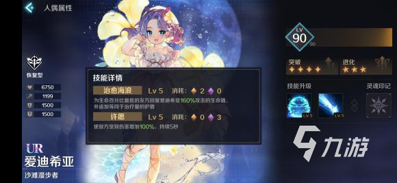 在技能方面,愛迪希亞治愈海浪技能,為生命值最低的隊友帶來治療,實現(xiàn)其115%攻擊力的血量治療,同時,帶來治療效果相同的護盾。它許愿技能提升隊伍的70%攻擊,這一效果持續(xù)5秒鐘。