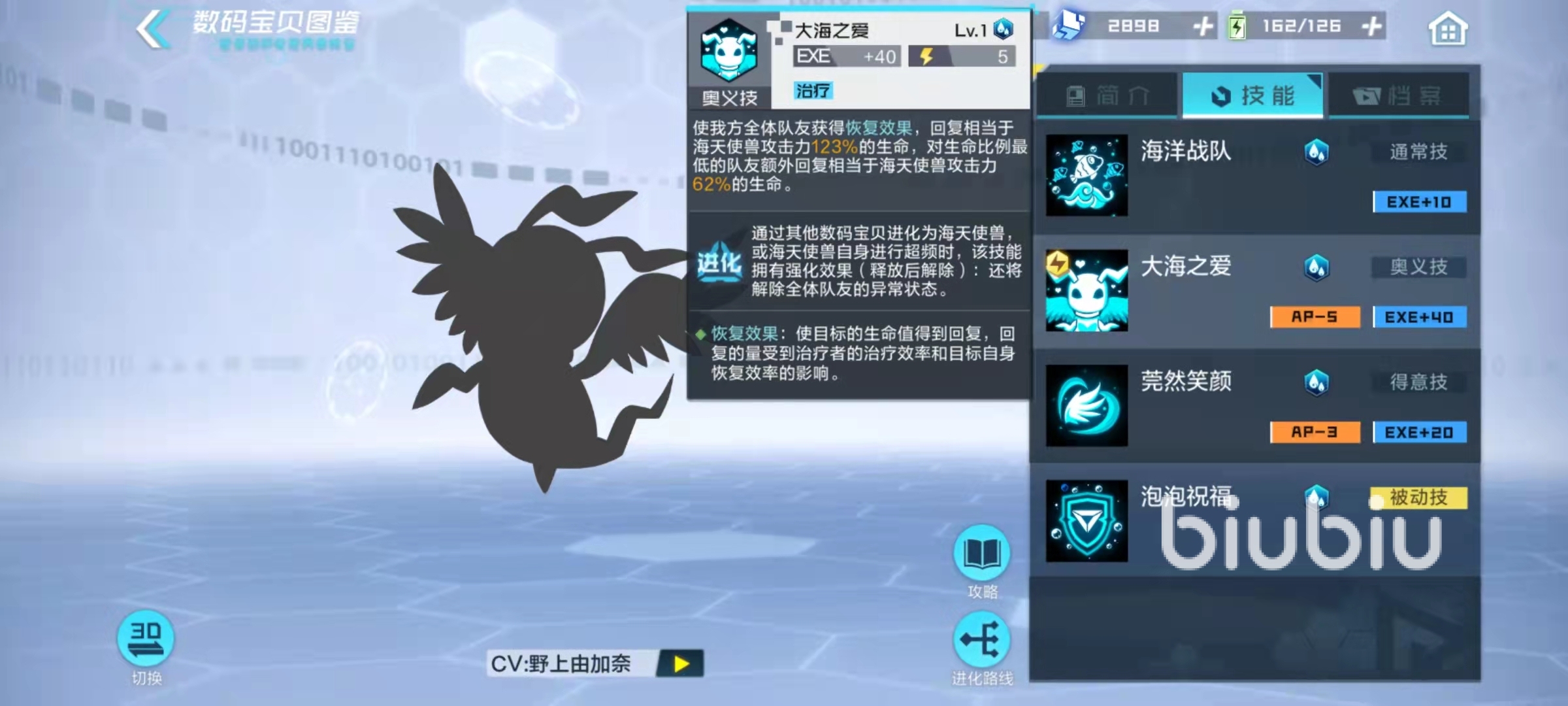 智天使獸(善)的得意技能天堂庇護所,可以在出戰(zhàn)的時候,就直接為全體隊友附加一層完全抵抗狀態(tài)。這樣的技能是最佳的選擇,只要速度足夠,那么就能使得己方完全不用受到異常狀態(tài)的影響。海天使獸的技能大海之愛,可以在使用之后不僅能加血,還可以為己方的全體數(shù)碼寶貝接觸異常狀態(tài)。再就是自己的技能泡泡祝福,在擁有了三層以上的漲潮之后,可以消耗三層漲潮效果,為己方為全體附加一次完全抵抗狀態(tài)。海天使獸的漲潮除了自身可以附加值外,其他的水屬性的數(shù)碼寶貝可以附加,可以說比較容易疊加的。