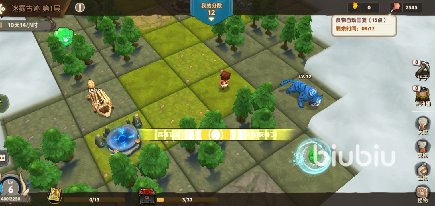 迷霧古跡是這款游戲的一個(gè)探索玩法,探索的地方越多,可以獲取的資源也就越多,主要是操縱自己的角色,在整個(gè)地圖中通過(guò)各種障礙物來(lái)解鎖更多的獎(jiǎng)勵(lì)區(qū)域,迷霧古跡有固定的探索周期,一般都是17天左右,只有一個(gè)地圖,在這個(gè)任務(wù)中最重要的就是食物,沒(méi)有食物自己操縱的角色就無(wú)法進(jìn)行移動(dòng),或者是挑戰(zhàn)其他的怪物,而食物只能通過(guò)時(shí)間來(lái)獲取。