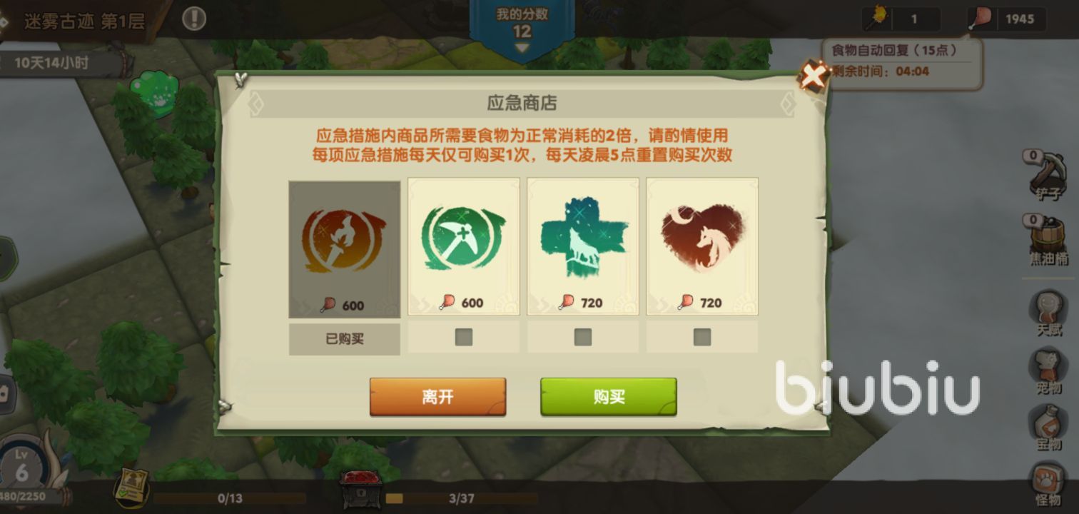 在游戲中,如果實(shí)在沒(méi)有火把或者是鏟子的時(shí)候,也可以點(diǎn)開屏幕左側(cè)的應(yīng)急商店,花費(fèi)食物來(lái)進(jìn)行購(gòu)買,應(yīng)急措施內(nèi)的商品所需要實(shí)物為正常消耗的二倍,所以如果玩家們?nèi)绻皇翘貏e著急通關(guān)的話,就不要消耗了,實(shí)在是有點(diǎn)不劃算。