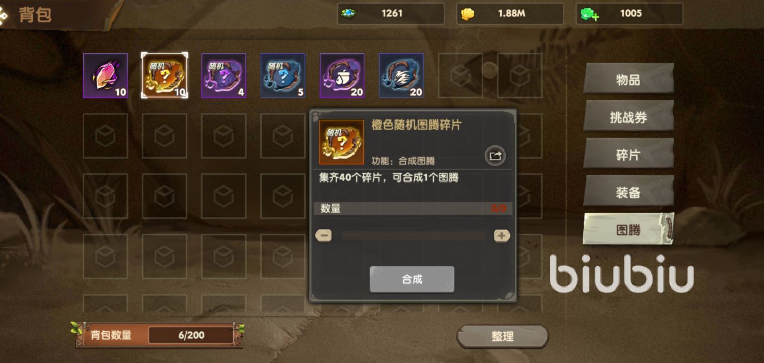 圖騰合成:游戲中的圖騰相當于天賦點,點擊之后就會永久增加相應的屬性,圖騰帶來的收益效果,技能效果,對于寵物的戰(zhàn)斗來說,幫助是十分大的,有的寵物的技能必須通過圖騰覺醒才能發(fā)揮出強大的威力,而圖層的等級就必須消耗圖騰碎片來進行提升,多個圖騰合在一起,可以觸發(fā)共鳴效果,在游戲中獲取圖騰一般都是碎片,橙色隨機圖騰碎片必須集齊40個才可以合成一個橙色圖騰,紫色為20個,藍色為十個。