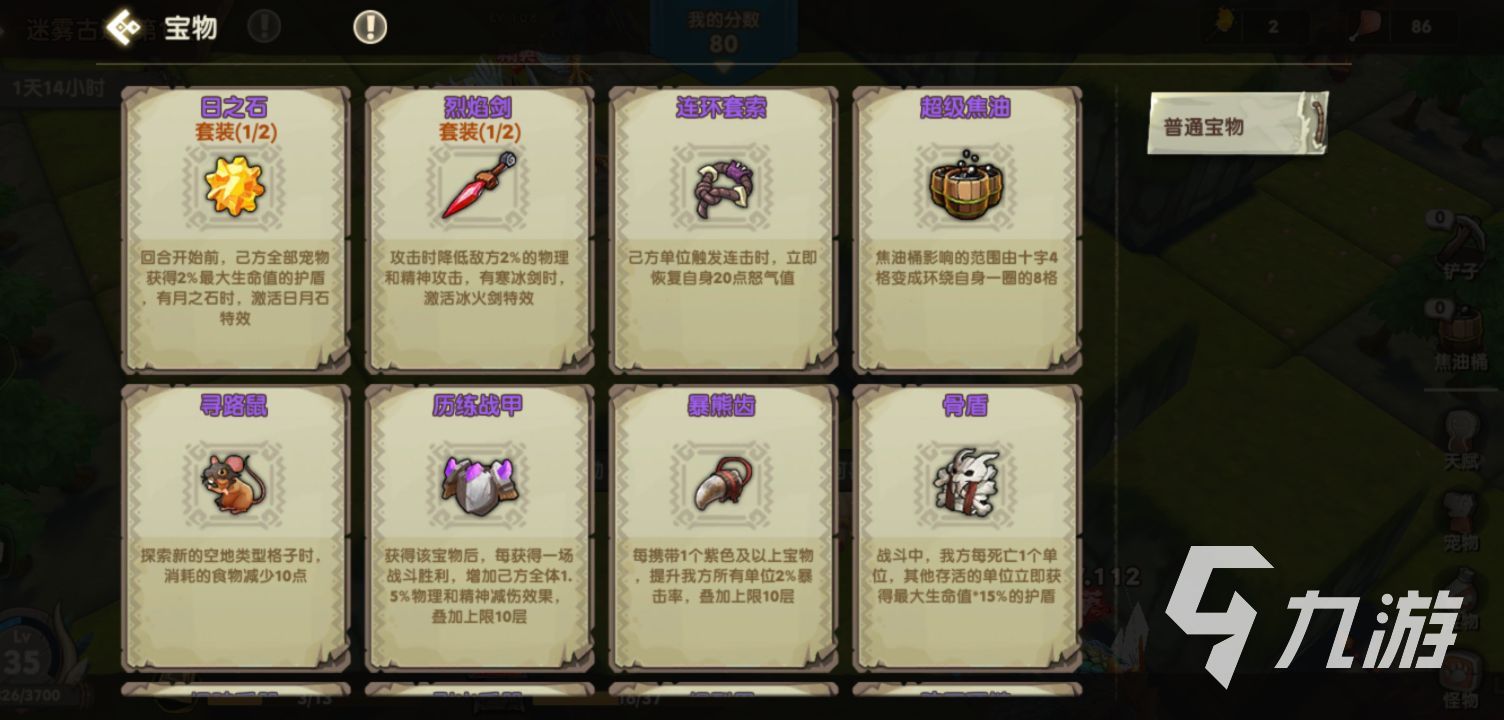 另外在寶箱中獲取的寶物都是直接給大家裝備,并且產(chǎn)生效果,大家也不用擔(dān)心是否需要裝備在寵物身上,這些寶物分別可以提供不同的探索,戰(zhàn)斗以及冒險(xiǎn)屬性,對(duì)我們的迷霧古跡模式十分有幫助。
