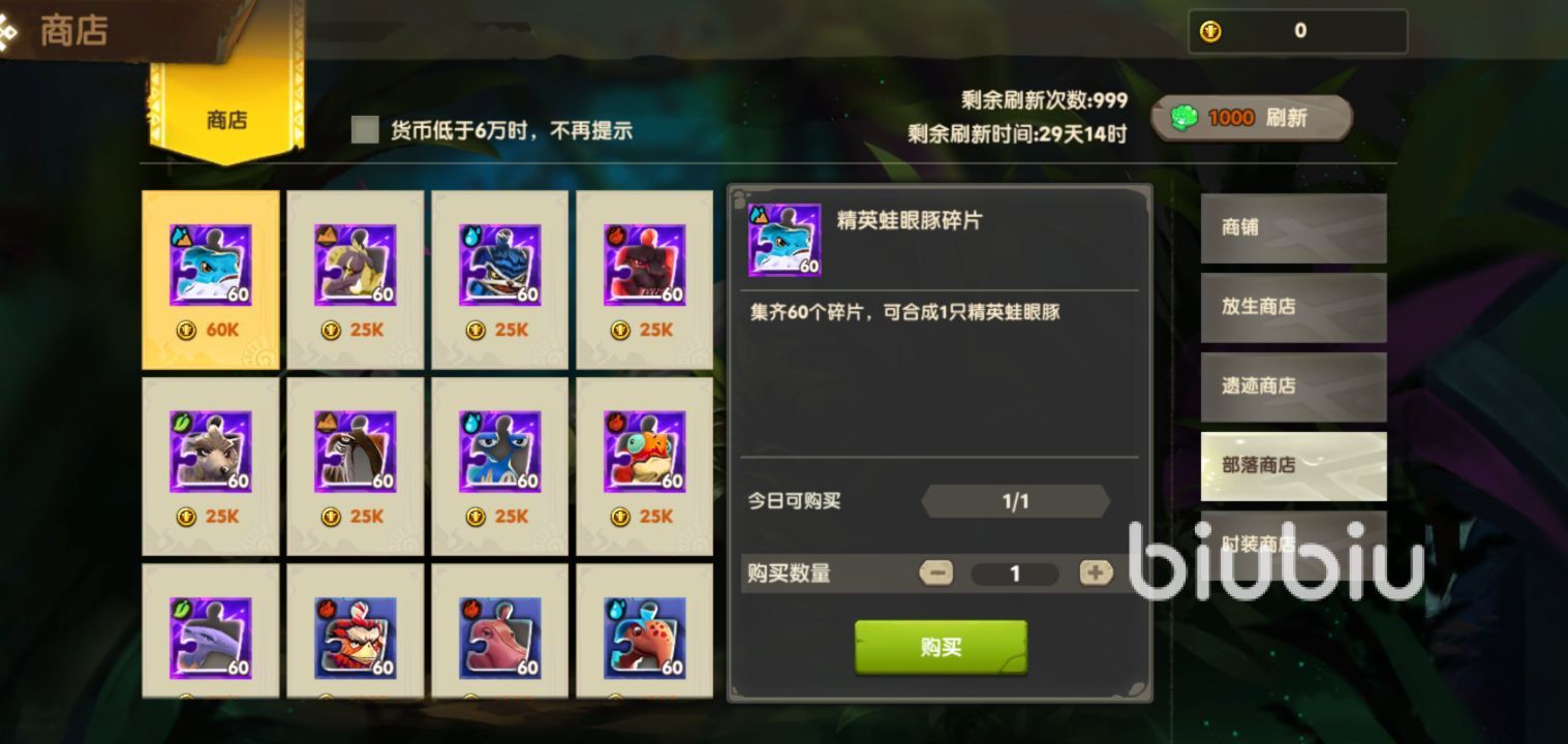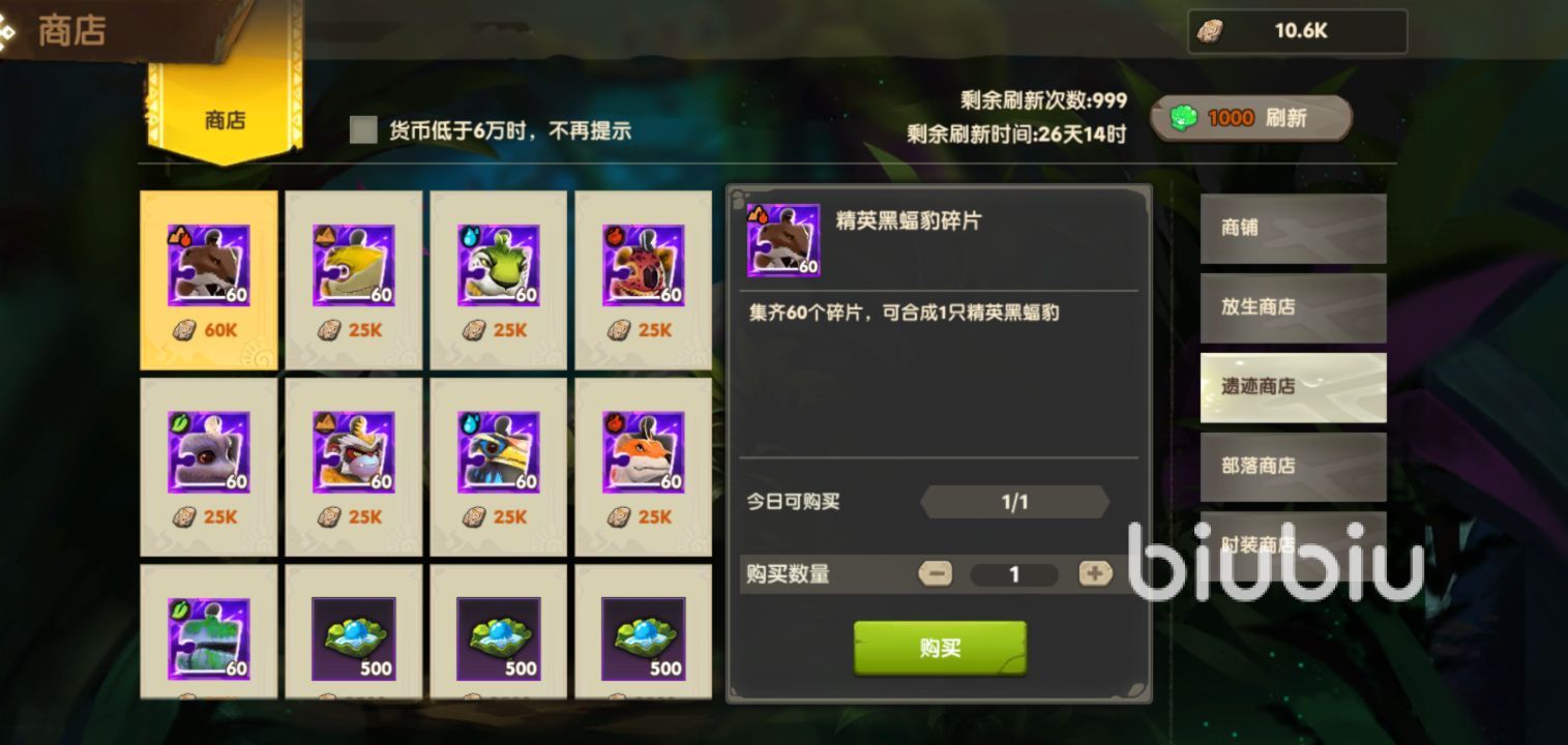 ssr寵物獲取隱藏方式:Ssr寵物并沒(méi)有像其他人說(shuō)的那么玄乎,也并不是只有通過(guò)充值648才能獲取,只要大家點(diǎn)擊右側(cè)的商店,來(lái)到遺跡商店或者是部落商店,攢齊一定的遺跡幣或者是部落幣,就可以慢慢兌換,這兩個(gè)隱藏的獲取ssr寵物的方式,很多小伙伴不太了解,但是不太推薦一些平民玩家,攢6萬(wàn)個(gè)碎片來(lái)兌換一只ssr寵物,因?yàn)?萬(wàn)個(gè)碎片都可以?xún)稉Q五只螺紋師或者是鸚鵡虎,都可以強(qiáng)化到第二個(gè)階段了,戰(zhàn)斗力肯定比一階的ssr寵物強(qiáng)。