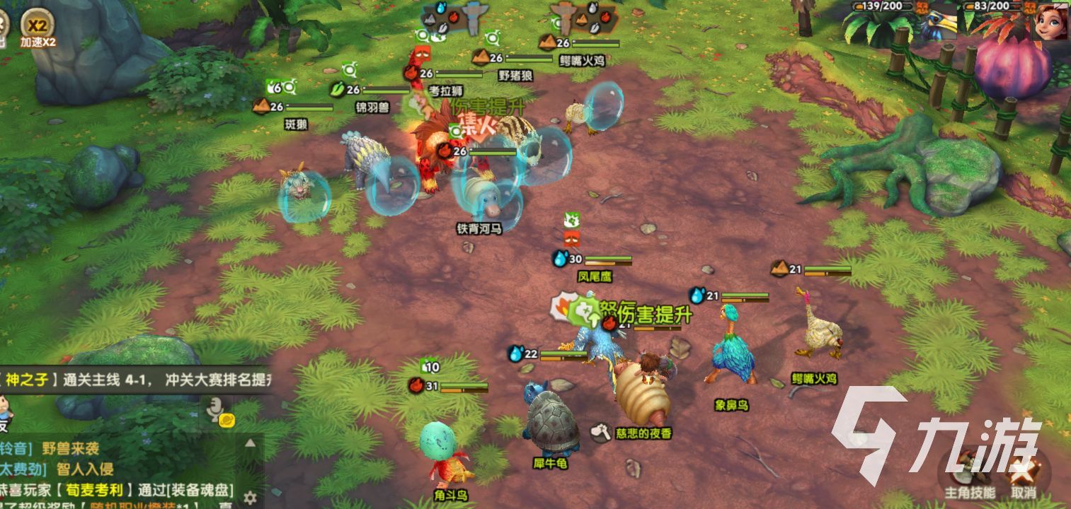 打過(guò)這一關(guān)還是很簡(jiǎn)單的,只不過(guò)玩家們需要打開背包,點(diǎn)擊自己的寵物,每個(gè)寵物都升級(jí)到25級(jí)以上,或者是將主戰(zhàn)寵物升級(jí)到30級(jí),解鎖兩個(gè)主要的技能,然后點(diǎn)擊左上角的加速按鈕,等待這個(gè)關(guān)卡通過(guò)就可以了,右下角的三個(gè)主要技能都可以點(diǎn)上,反正并沒有什么操作性,全是系統(tǒng)給釋放。
