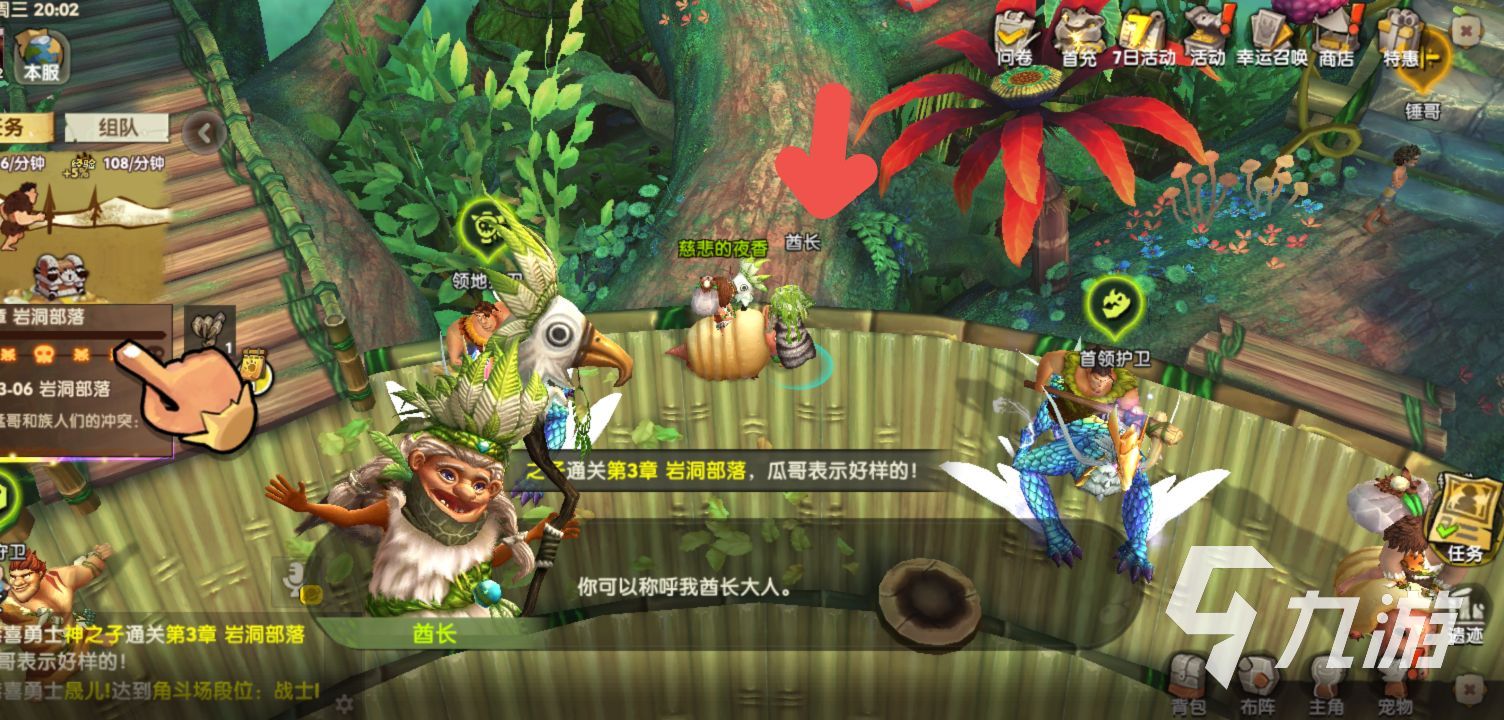 想要通關(guān)酋長(zhǎng)的任務(wù),大家就必須來(lái)到第三章,也就是說(shuō)2-12關(guān)卡之前都是無(wú)法見到酋長(zhǎng)的,通過(guò)第二章節(jié)任務(wù),大家才可以有來(lái)到主要巖洞部落領(lǐng)地的機(jī)會(huì),來(lái)到大圓盤中央就向北走,就可以看到酋長(zhǎng),走過(guò)去與它對(duì)話,我們可以得知部落中部落中由于下一任酋長(zhǎng)的繼承問(wèn)題發(fā)生了沖突,因此需要我們幫忙進(jìn)行勸阻。