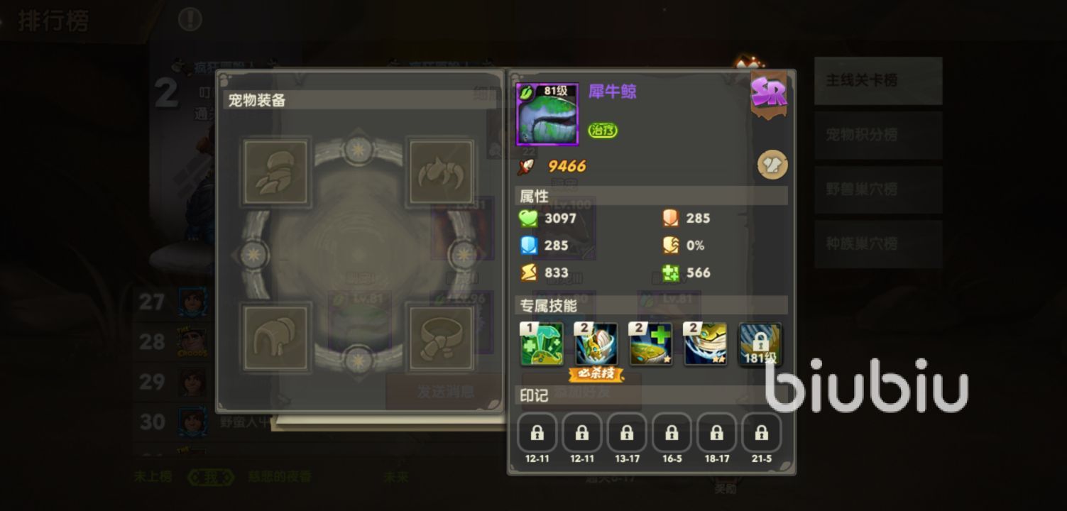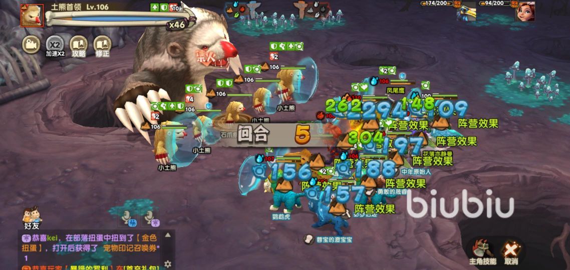由于這是五個玩家共同挑戰(zhàn)的多人boss,而每個玩家僅僅只能上陣兩名最強的寵物,因此在陣容搭配上也應(yīng)該有所計劃,必須有一個玩家攜帶犀牛鯨、蛙眼豚,這個玩家在戰(zhàn)斗中主要負責的就是為隊伍提供源源不斷的奶,保證大家都能存活下去,因為土熊首領(lǐng)怒氣滿了之后可以有一定的概率將所有人擊飛,蛙眼豚有免疫控制的效果,即使隊友被滅了,也可以及時復活,再進行戰(zhàn)斗。
