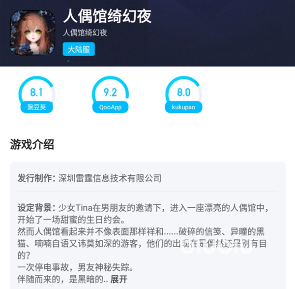 首先小編介紹一下今天分享的這款產(chǎn)品,在手機瀏覽器中搜索biubiu進入到軟件的官方網(wǎng)站完成下載安裝。這是目前國內十分專業(yè)的一款手游加速工具,打開之后能夠看到分為了加速、游戲庫、消息和我的這四個板塊,今天主要利用的是前兩個。點擊游戲庫,搜索人偶館綺幻夜,隨后點擊名稱進入到專區(qū)中。在這里能夠看到多個平臺對于該作品的評分,基礎的玩法介紹和一些圖片資料,幫助我們判斷作品的類型、玩法是否合我們的胃口。