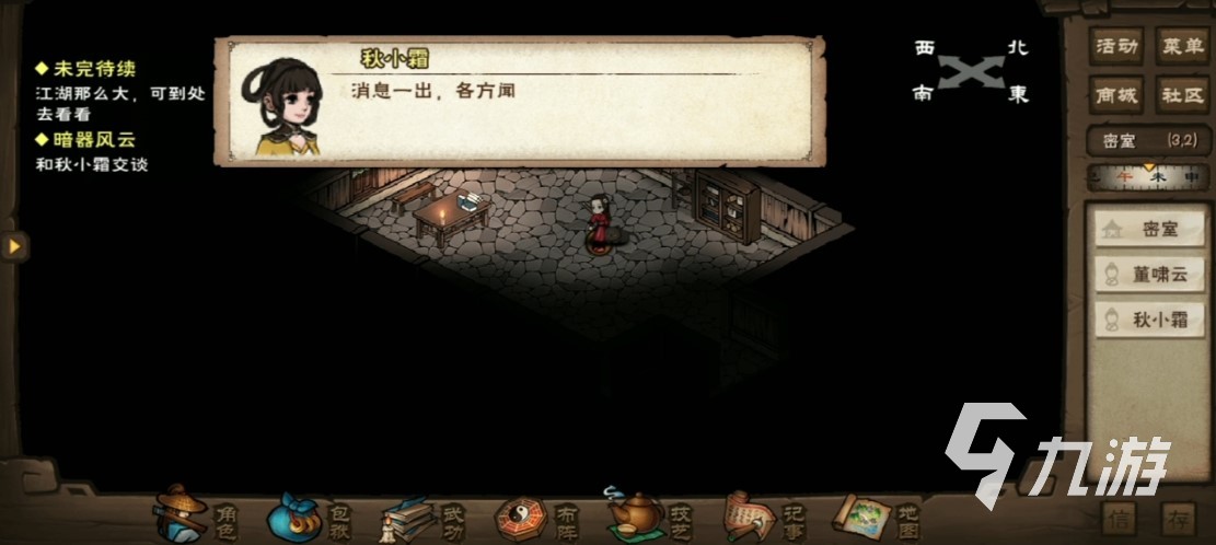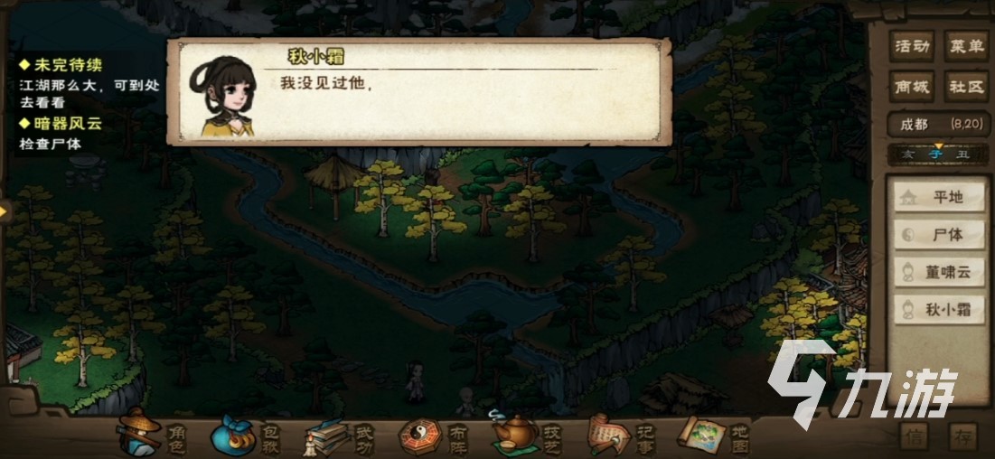 于是八卦門便走到風(fēng)口浪尖上了,而你們要做的就是找出真兇,并讓暗器再次回到大賽上,當(dāng)這些事情全部了解了后,你們便要?jiǎng)由砣ブ付ǖ攸c(diǎn)來和捕快交流案情,當(dāng)交流完后便要去事發(fā)地來尋找線索。