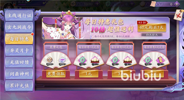 3、購買獲得,點擊體力值右邊的+號就可以進入購買界面,首次購買是免費了,此后每次購買需要消耗30魄玉購買。購買一次可獲得50體力值。此外還可以在商店和每日特惠中購買體力值。商店是30魄玉購買50點體力,每日特惠需要充值購買。