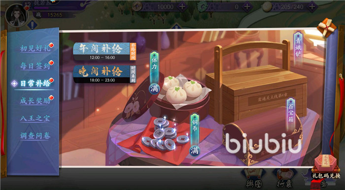 1、補給,每天有2個補給的時間,系統(tǒng)會免費贈送體力值,每次贈送50個體力值,玩家要及時領(lǐng)取,不然過了時間段就會自動消失了。午間補給時間是12:00-16:00,晚間補給時間是:18:00-23:00