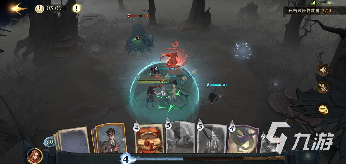 3、做完1和2之后就可以清掉兩個(gè)纏,boss來(lái)了就用阿瓦達(dá)、水柱打怪,【白鮮香精】隨時(shí)加血,卡姐記得cd好了也丟下來(lái),沒(méi)有赫敏伙伴卡的可以換丹尼爾在身后加血或者是洛蒂加藍(lán),【颶風(fēng)咒】是防止毒的記得留著。