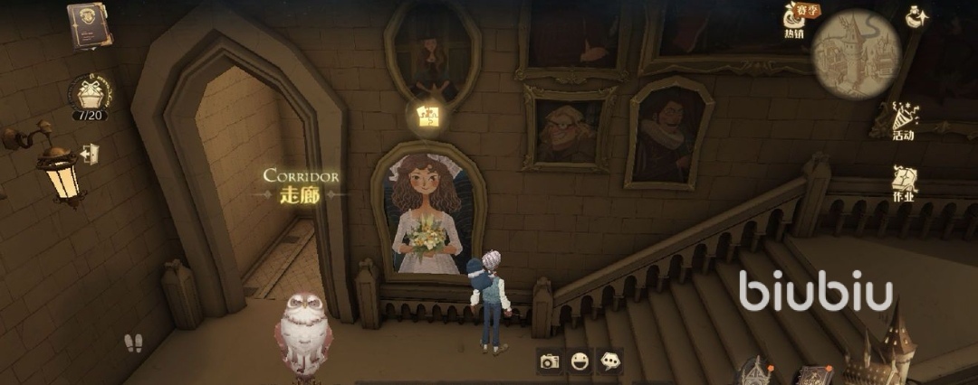 之后點擊走廊,進入到里邊,再往走廊盡頭走,玩家便可以看到盥洗室,桃金娘就在這里,玩家就可以向桃金娘領(lǐng)取拼圖線索了,這個線索具體為:剛剛皮皮鬼穿過這里,學(xué)貓頭鷹“咕咕”直,我猜那是他對下一片碎片給出的線索。