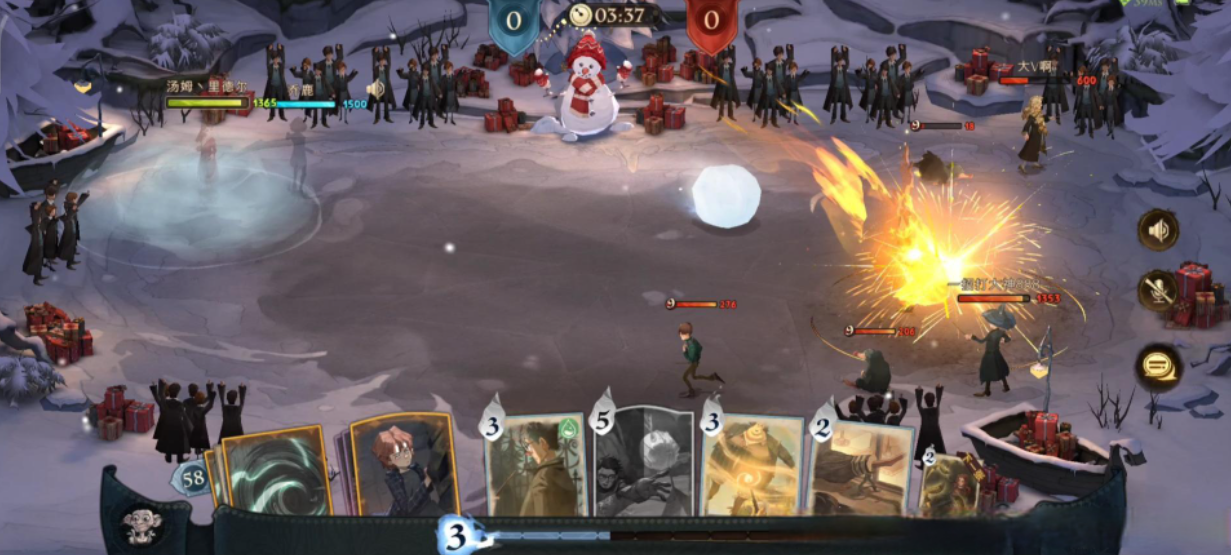 冰雪娛樂賽:2V2的競技對決,率先擊殺六次的隊伍獲勝。游戲中會隨機刷新雪球滾入場內(nèi),玩家被撞倒后會造成巨額傷害,需要及時躲避。除此之外我們手牌的卡會隨機升級魔力+1的卡,但耗藍不變。