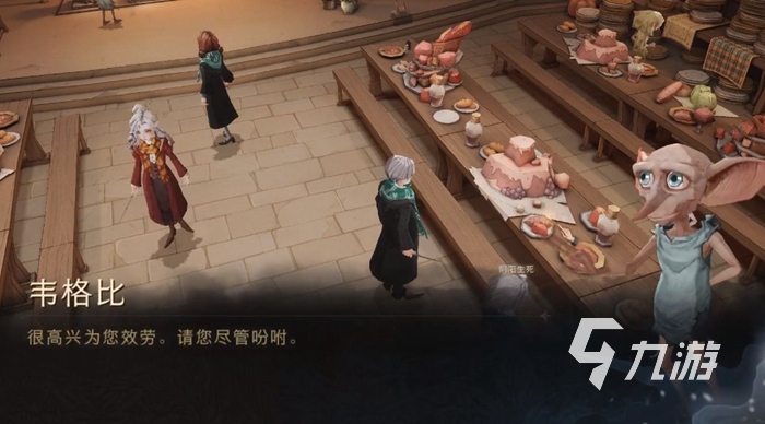 在霍格沃茨廚房內(nèi)我們可以看到和禮堂相似的幾排餐桌,但是相對而言要簡樸很多,而餐桌上自然是擺放了很多的美食。另外在霍格沃茨廚房之內(nèi)我們也是可以看到很多的家養(yǎng)小精靈,其中的幾個是可以互動對話的NPC?;舾裎执膹N房這個新場景不是對于原著設(shè)定十分還原,相信正式上線之后官方也會加入彩蛋甚至是拼圖任務(wù)等。
