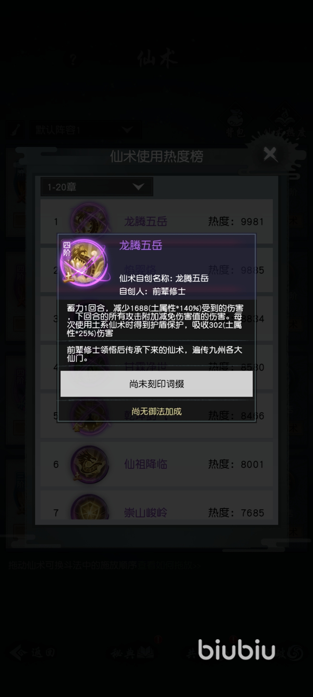 土系紫色法術(shù):龍騰五岳:蓄力一回合,減少受到的傷害,這個(gè)減少量為:土屬性*140%的加成值。同時(shí),每次使用土屬性的技能時(shí)候,可以獲得一個(gè)土屬性*25%的護(hù)盾保護(hù)??梢詾橥婕姨峁└哳~防守。