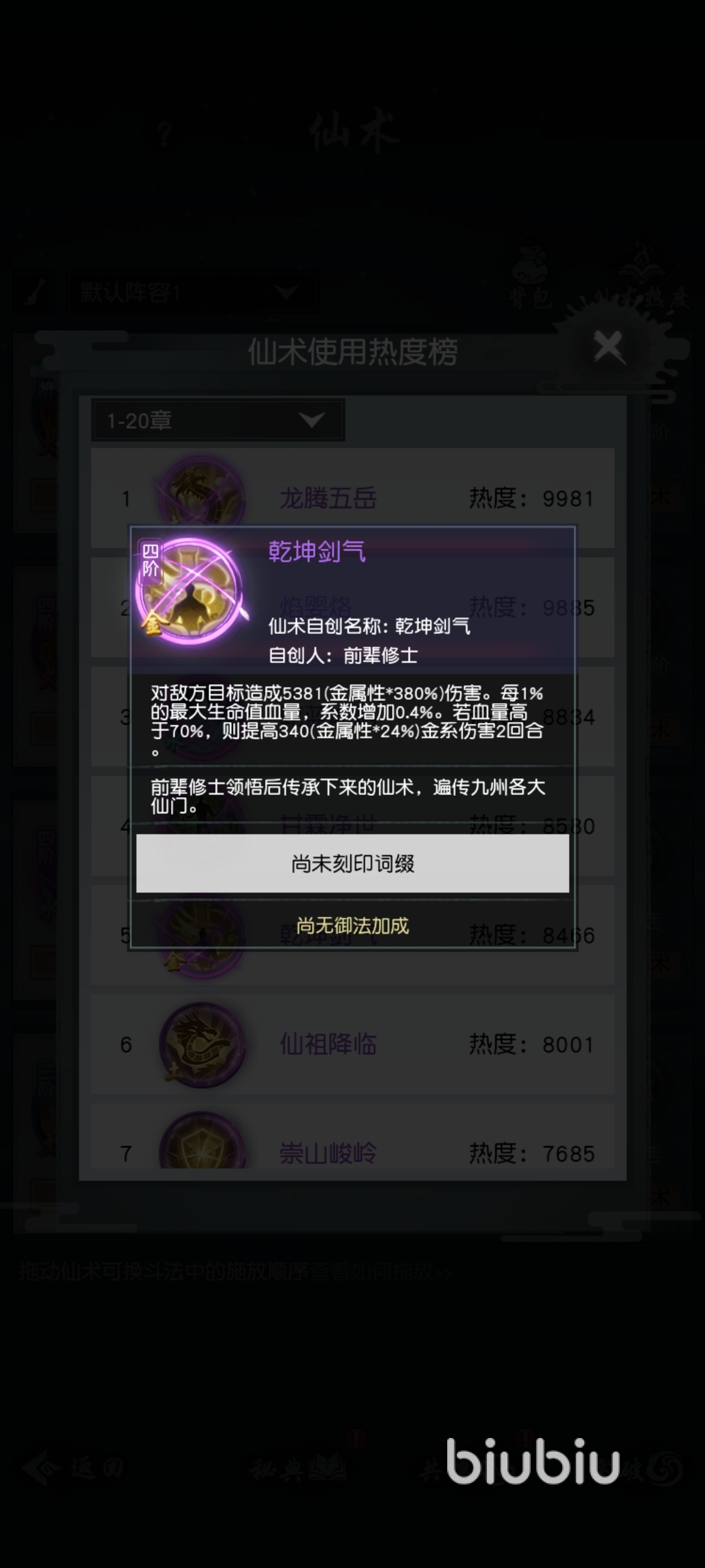 金屬性紫色法術(shù):乾坤劍氣:對(duì)敵人造成金屬性*380%的傷害,我們每有1%的血量,就可以提高這個(gè)380%系數(shù)0.4。玩家使用這個(gè)技能作為核心就需要堆血量提高戰(zhàn)斗力!