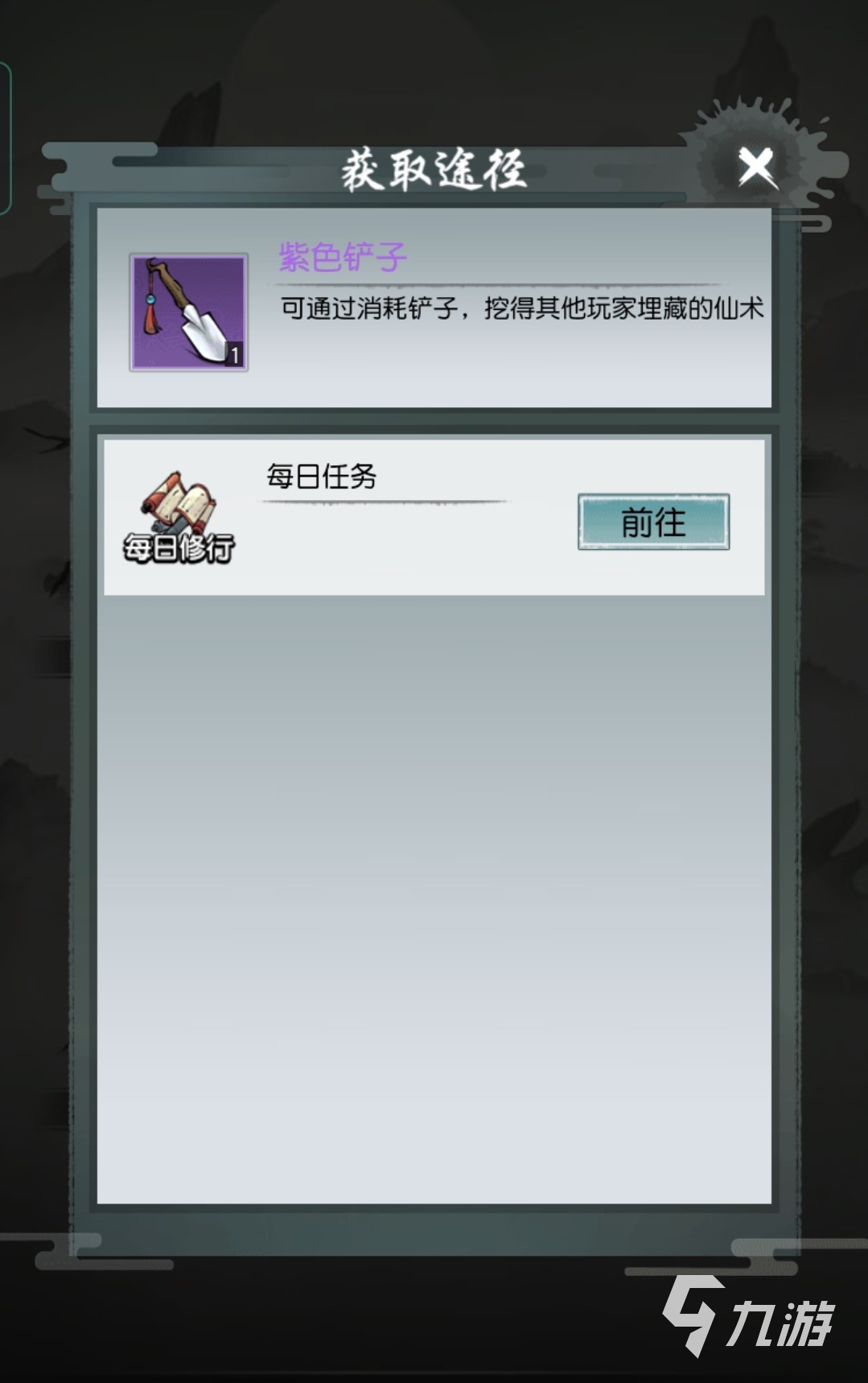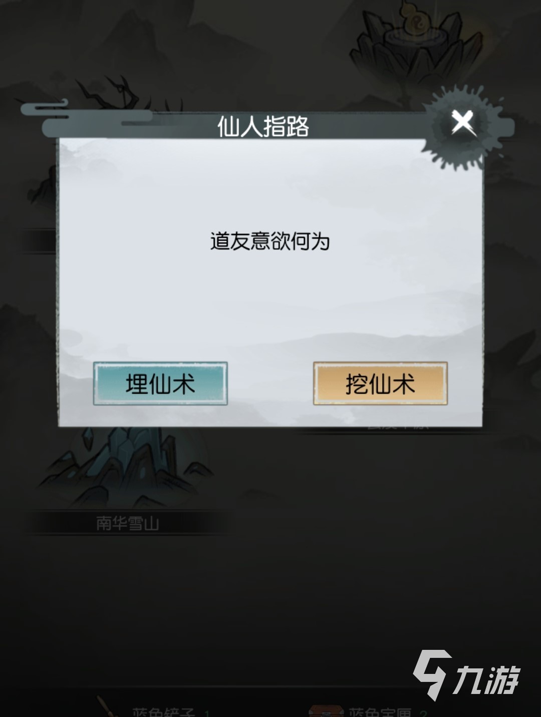 玩家挖仙術需要用到鏟子,一共有藍色和紫色兩種鏟子,紫色的鏟子可以挖出更高階的仙術,藍色的鏟子可以挖出較低階的仙術,玩家點擊任意一個地點就可以使用鏟子來挖取仙術了!