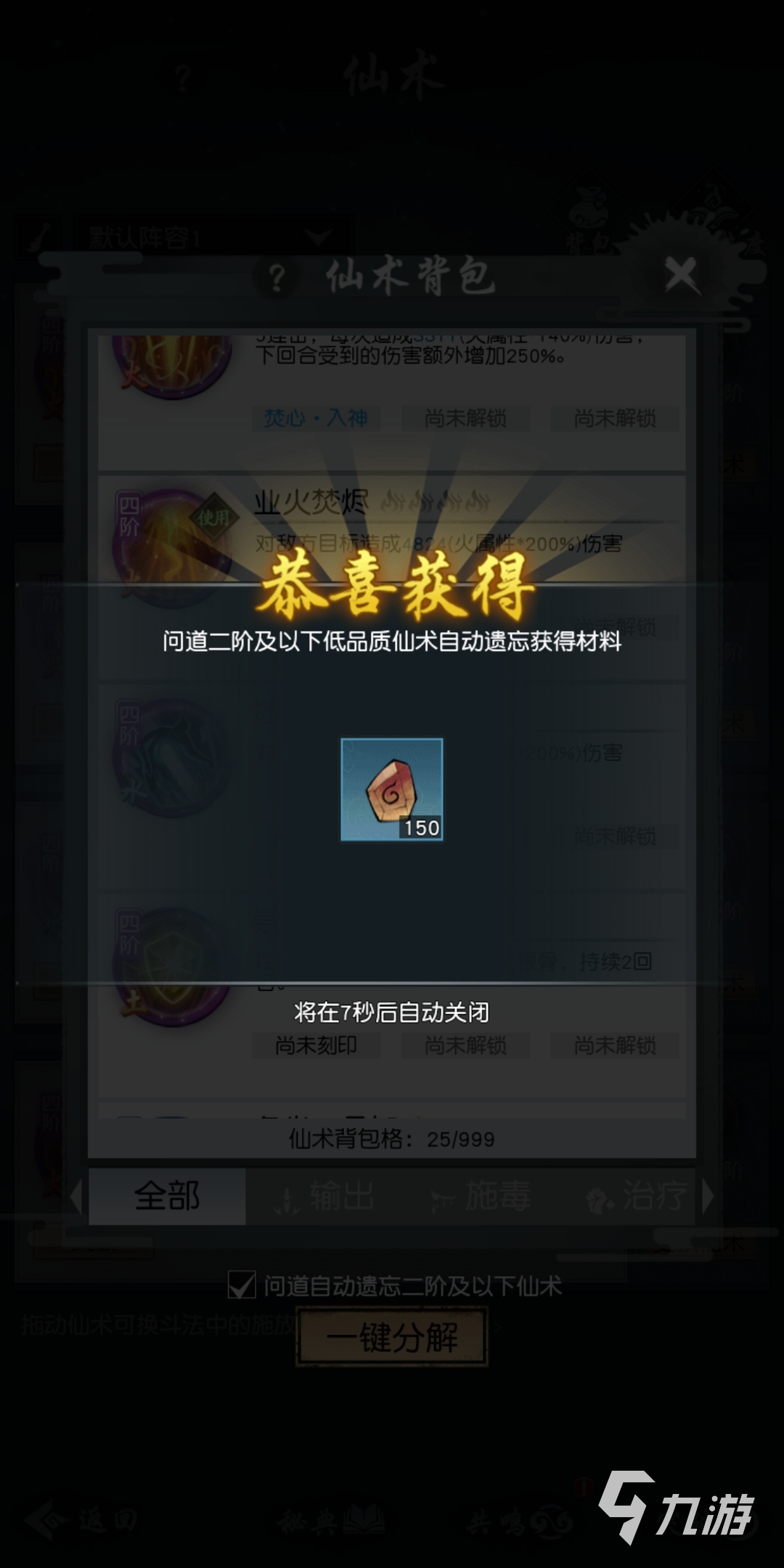 仙術(shù)印記只有一個渠道可以獲得,那就是通過仙術(shù)的分解。小編在這里建議大家盡量分解二階的仙術(shù),三階可以留著跟高階的仙術(shù)共鳴。只要勾選下方的二階和一鍵分解,就可以快速得到仙術(shù)印記,品階越高的仙術(shù)分解到的印記也就越多。