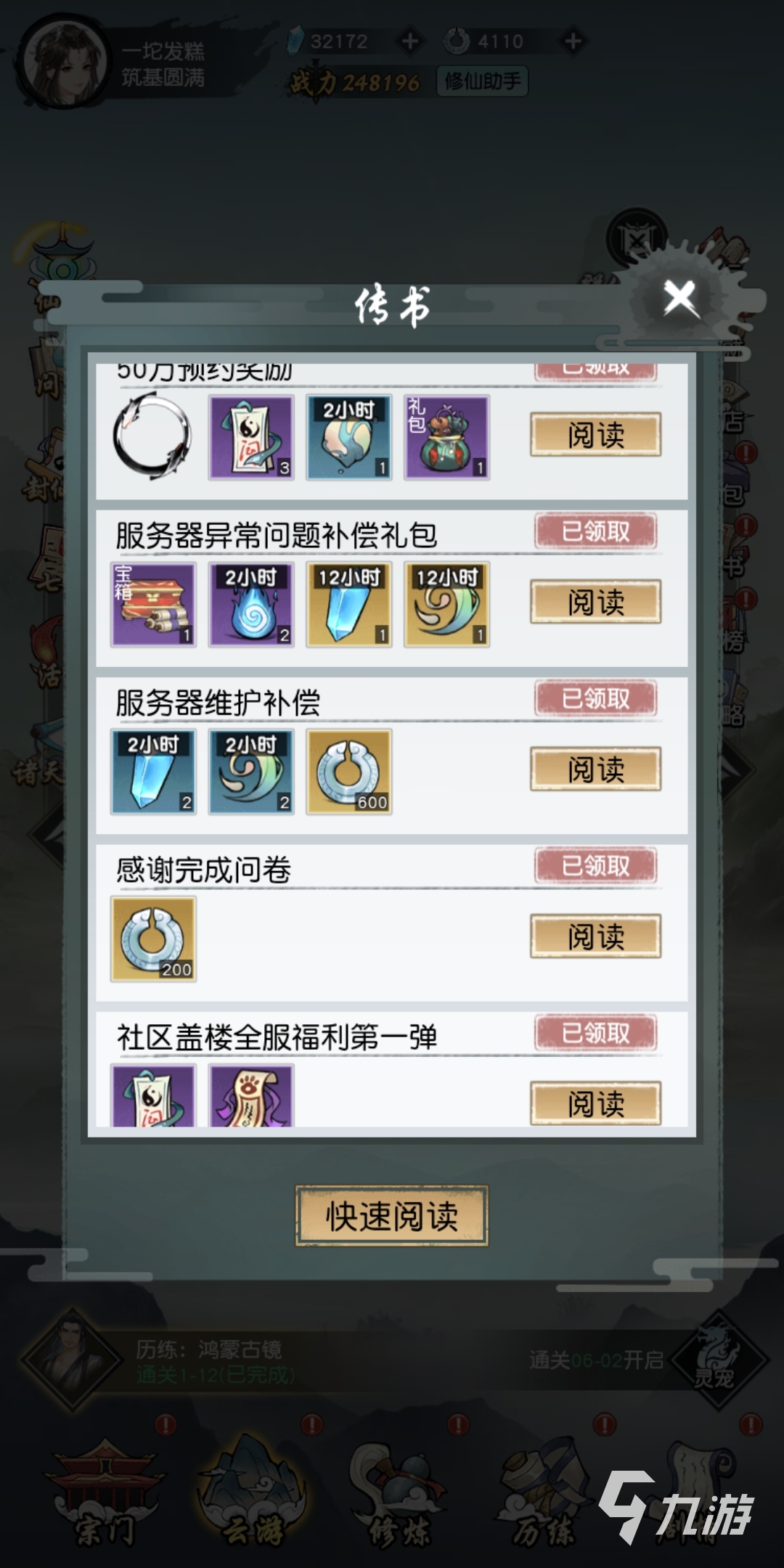 傳書是全服的玩家一起努力得到的獎(jiǎng)勵(lì),當(dāng)預(yù)約達(dá)到50萬的時(shí)候,系統(tǒng)會(huì)下發(fā)獎(jiǎng)勵(lì),其中包含兩小時(shí)的五靈精華,玩家可以在右上角的背包里將其打開,得到相應(yīng)的數(shù)值。