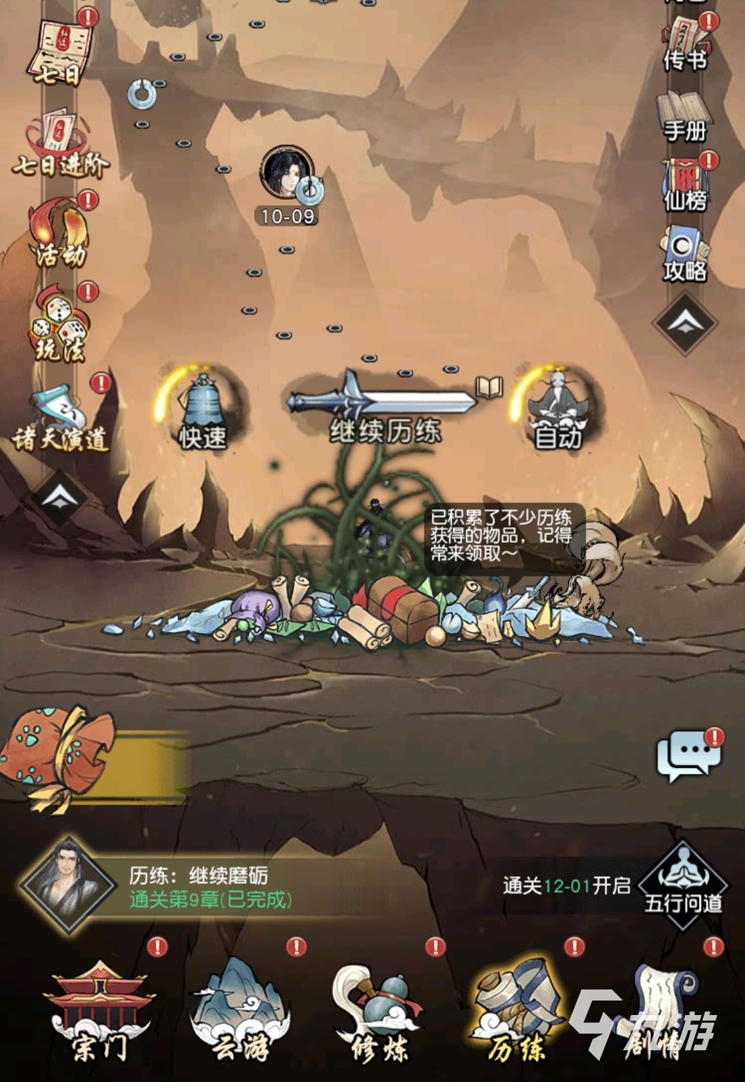 游戲中的板塊和模式比較多,有的玩家不知道諸天演道在哪里,小編這里告訴大家,玩家們可以點擊底部菜單欄的歷練板塊,這時就可以看到左上角的諸天演道的按鈕了,玩家點擊諸天演道就可以進入了哦!