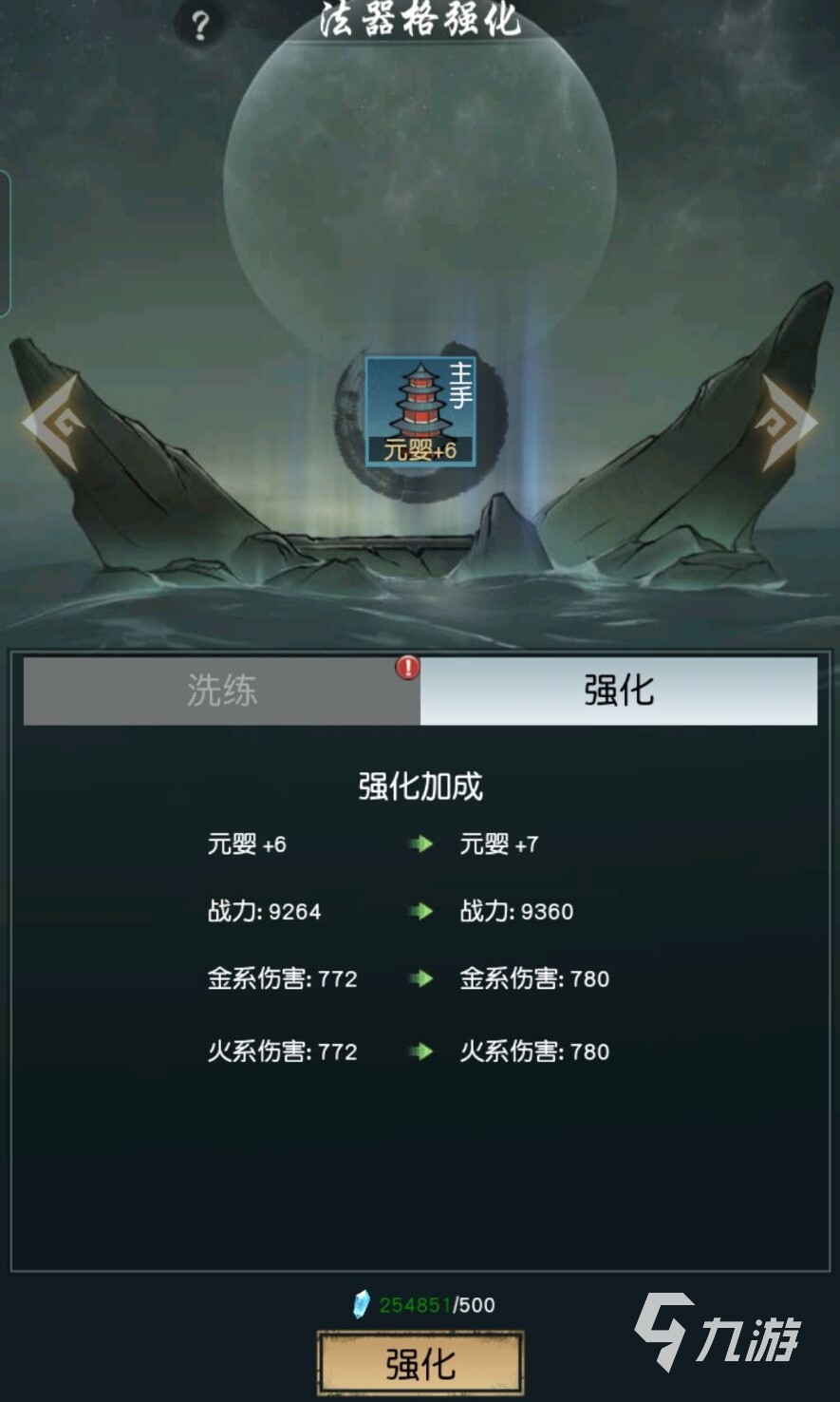 玩家在法器的主界面先點擊法器三寶塔再點擊強化按鈕,就可以強化法器三寶塔的各項技能和屬性了哦!