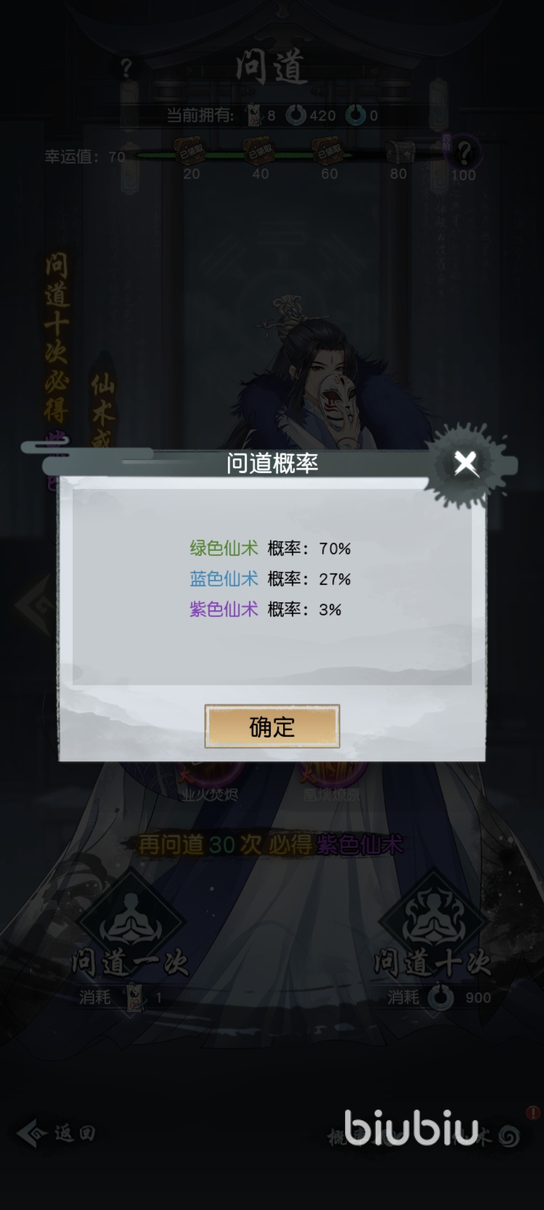 那么在抽取仙術的時候,我們以問道為例子: